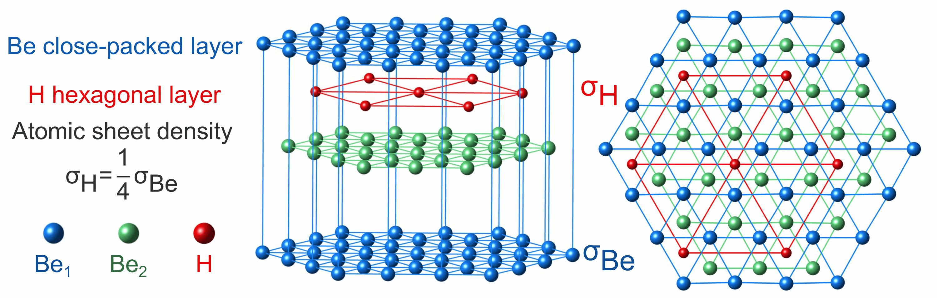 图1. 少氢金属键氢化物(Be4)2H纳米超晶格的设计思路与晶体结构。