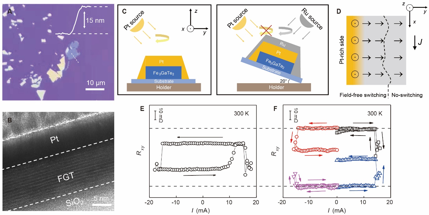 图1 范德华磁体Fe3GaTe2/重金属异质结与电流驱动无场磁化翻转
