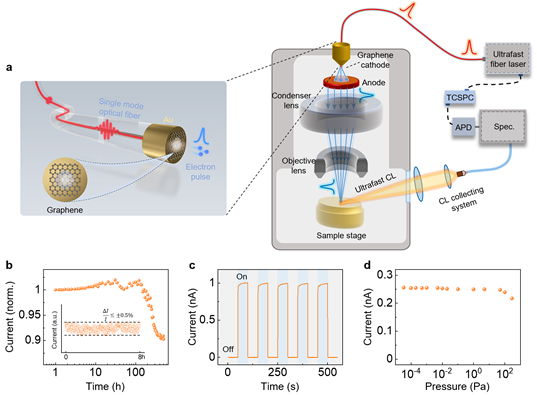 图1 光纤集成石墨烯高稳定超快电子源及电镜集成