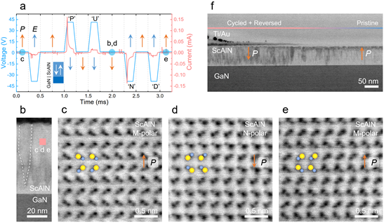 图2. 铁电ScAlN极化翻转过程中的可逆原子位移。